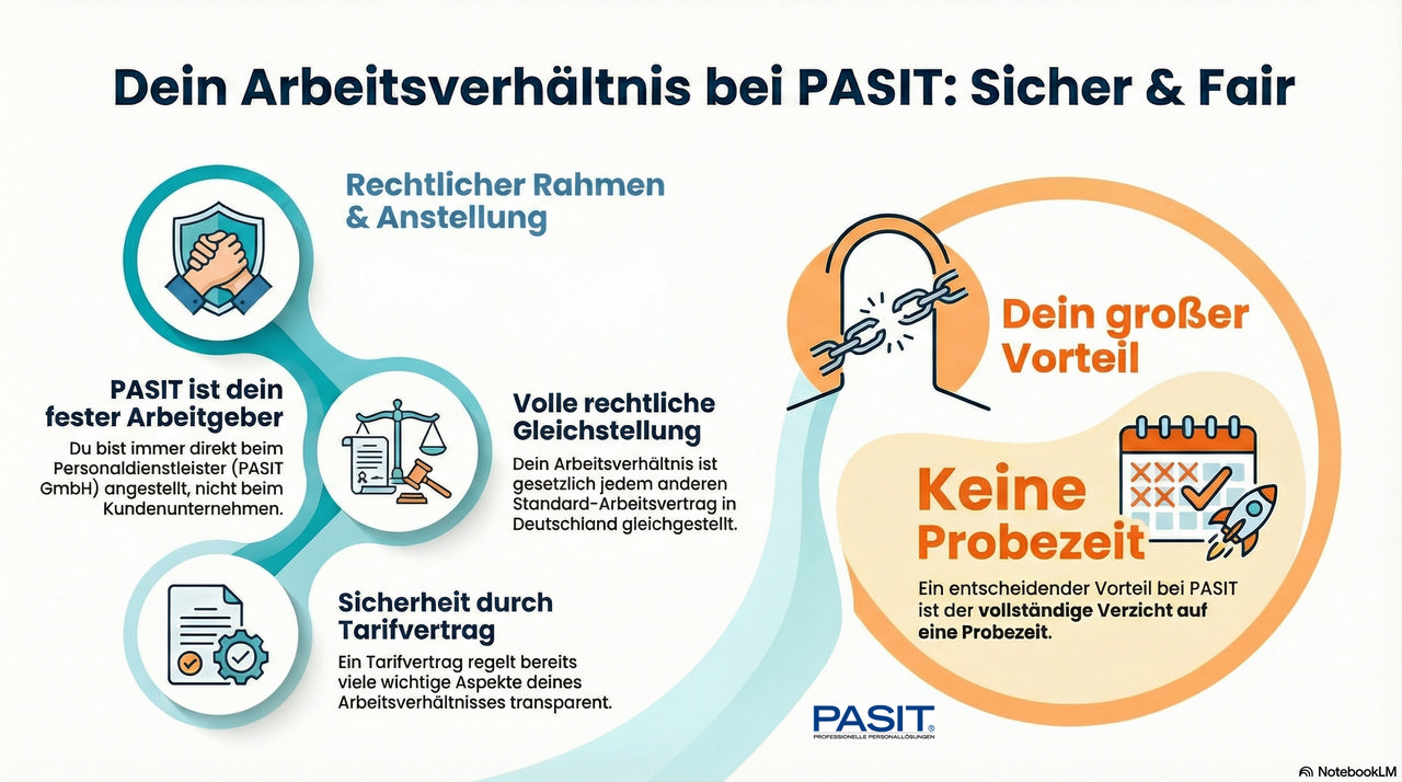 Ein Vertrag in der Zeitarbeit ist gesetzlich jedem anderen Arbeitsvertrag gleichgestellt und entsprechend geschützt. - Besonderer Vorteil bei der PASIT: