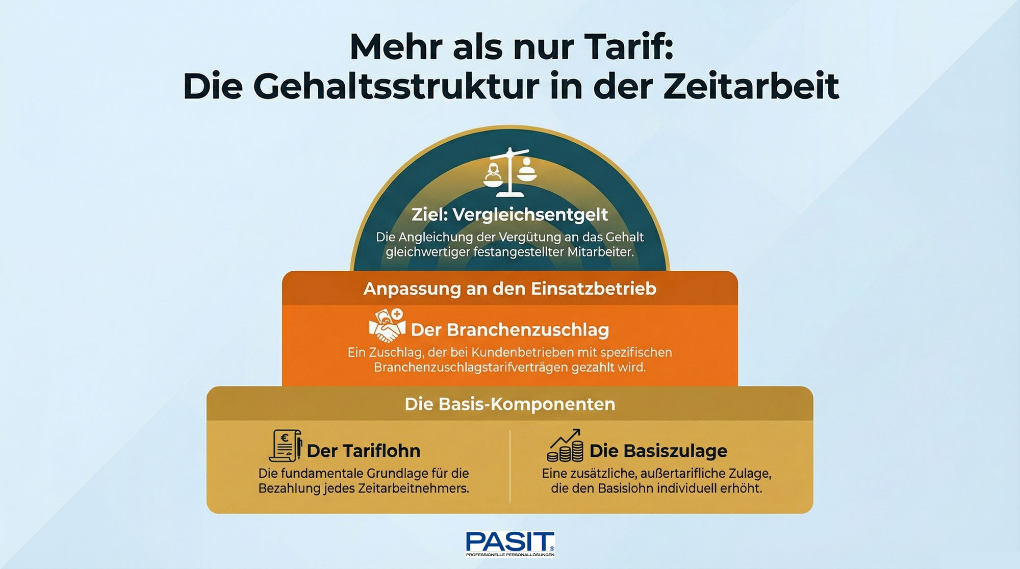 Nein, der Tariflohn stellt in der Zeitarbeit lediglich das unverzichtbare Fundament dar, auf dem die gesamte Vergütungsstruktur aufgebaut ist. Er bietet Sicherheit und einen verlässlichen Rahmen für die Basisentlohnung eines jeden Zeitarbeitnehmers. Doch damit ist das Ende der Fahnenstange in der Regel noch nicht erreicht. In der Praxis wird dieser Grundlohn durch verschiedene Mechanismen ergänzt, um sowohl der individuellen Qualifikation des Mitarbeiters als auch den Anforderungen des Marktes gerecht zu werden
